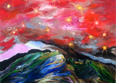Red lights above jerusalem. Acrylic on canvas.32_ x 40_